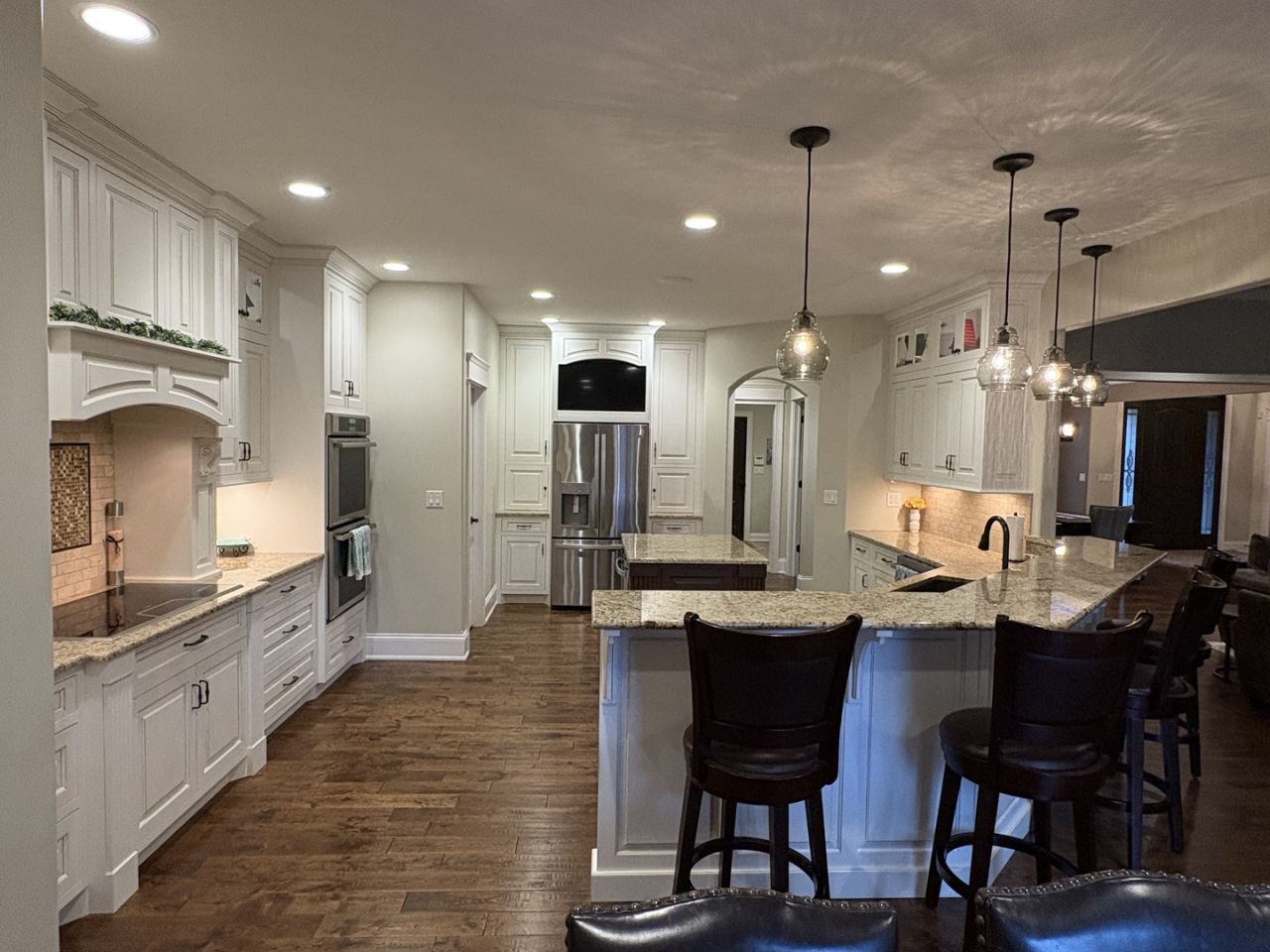 Welcome to this exceptional custom-built walkout ranch set on over an acre in the highly sought-after Arrowhead Acres neighborhood of Sycamore, IL. With over 5,500 square feet of beautifully finished living space, this home offers the perfect balance of luxury, comfort, and everyday functionality-set against a serene natural backdrop. The 3,100 square foot main level features 3 spacious bedrooms and 2.5 baths, along with an open, thoughtfully designed layout ideal for both entertaining and daily living. The gourmet kitchen is a true centerpiece, boasting a large island with a built-in microwave drawer, double oven, walk-in pantry, and custom cabinetry with soft-close drawers. A well-appointed laundry room with built-in lockers adds convenience and organization to the main floor. Just off the family room, a screened-in porch creates a seamless indoor-outdoor living experience-perfect for enjoying peaceful mornings or evening gatherings. The fully finished 2,400 square foot walkout basement is an entertainer's dream. It includes an additional bedroom and a custom bunk room with two built-in bunk beds, along with one full bath and a half bath. The expansive lower level is packed with amenities, including a game room featuring shuffleboard, a pool table, and an electronic dart board, a dedicated home gym, and an impressive theater room complete with a projector and screen for an immersive viewing experience. Step outside to the screened-in lower patio with a hot tub, offering a private space to relax year-round. The backyard is truly one-of-a-kind, backing to a branch of the Kishwaukee River-ensuring privacy with no future development behind you. Enjoy the beautifully designed outdoor space featuring a stone patio, outdoor stone fireplace, tranquil stream, and a basketball court-perfect for both entertaining and recreation. This remarkable property offers a rare opportunity to own a custom home with high-end features, expansive living space, and breathtaking natural surroundings in one of Sycamore's most desirable neighborhoods.