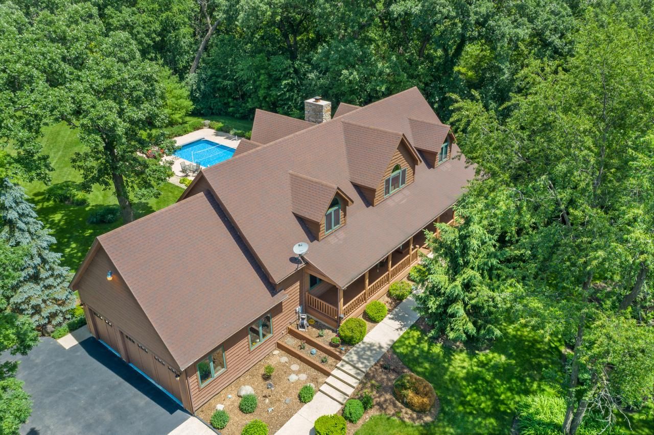 THE ULTIMATE STAYCATION! Picture living in this amazing 4 bedroom, 4 full bath custom home, surrounded by 10+ ACRES of vast greenery and sanctuary. Life here in this secluded country retreat is ideal for chill-axing with family & friends either inside or out. Vermont Carlisle wide plank pine flooring offers a warm welcome to this incredible home. The soaring vaulted great room boasts floor to ceiling Hurd windows providing the perfect backdrop to the stunning yard including an 18' x 36' in-ground heated pool with auto-cover and surrounding patio space. Nights are cozy when relaxing by the beautiful Wisconsin stone fireplace with custom hickory mantle. An impressive vaulted FIRST FLOOR MASTER SUITE includes a private deck overlooking the vast yard that includes a 3/4 acre stocked pond for fishing and even a tire swing to take your cares away. A Wisconsin stone sculpted wall separates a private master den/office to the luxury bath. A large whirlpool tub & 6-head shower add tranquility, and the natural wood double sink vanity brings the outdoors in. The open kitchen features a 15' island making serving quick & easy. Highlights include pine cabinetry, a Kohler cast iron farmhouse sink, granite counters & tiled backsplash. Separate dining & sunroom areas offer additional space for meals, and the sunroom opens to a deck overlooking the in-ground pool, yard and pond. The main level also offers a guest bedroom/in-law suite with access to a full bath. The hearty natural log pine staircase leads to the spacious loft with views of both front & back yards. Two generous vaulted bedrooms with walk-in closets share an additional full bath on the upper level. The finished deep-pour English basement featuring scored and acid stained concrete radiant heated floors boosts a massive open footprint including a wet bar, rec & family room areas, exercise area, a full bath plus access to the large 3-car radiant heated garage. Outside is simply a WOW FACTOR! The private tree-lined drive first stops at the 48'x 54' pole barn with electric, 1/2 concrete flooring and large doors on either side. A large open space has newer White Pine trees, yard watering hydrants, a garden & could easily convert to pasture if you want to bring horses to this paradise. The front of the home has a full length open air front porch to enjoy the stunning preserve-like setting, and the Haida Skirl Western Cedar Siding blends this home directly into nature. Amazing hunting or nature watching is to be had with owned property on both sides of Blackberry Creek and a wooded wonderland of creatures both large and small. 5 acres of additional property available separately that adjoins this property to create a 15 acre paradise! Did we mention yet that this retreat is literally a couple minutes from hopping onto I88 at the new interchange and you can have the best of both worlds of privacy AND convenience? In a world of being at home 24/7, qualified buyers can come tour this one-of-kind STAYCATION RETR