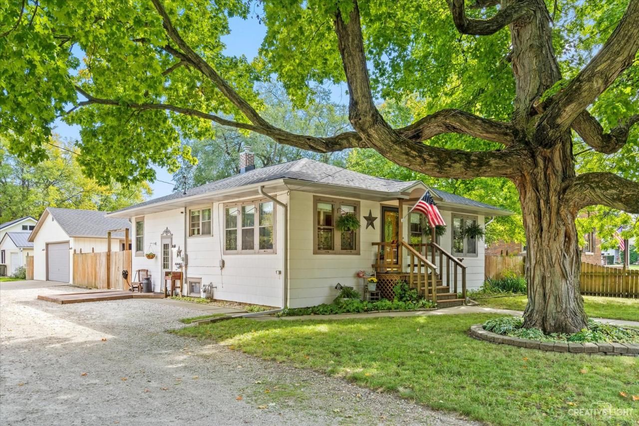 Walk to downtown Yorkville from this charming 2 bedroom ranch with finished basement. Gorgeous hardwood flooring and trim throughout. The large eat in kitchen has so much character with wood plank ceiling, stained glass windows, above and below cabinet lighting along with an abundance of cabinet space. The bath on the main floor has been recently updated. Ample storage and laundry chute. The finished basement provides a family room with fireplace, half bath and bonus room. Exterior of home has new roof and gutters. The backyard is it's own private retreat with a tall wooden fence, patio and fire pit area. The oversized 2.5 car garage is heated with stairs accessing the loft area!